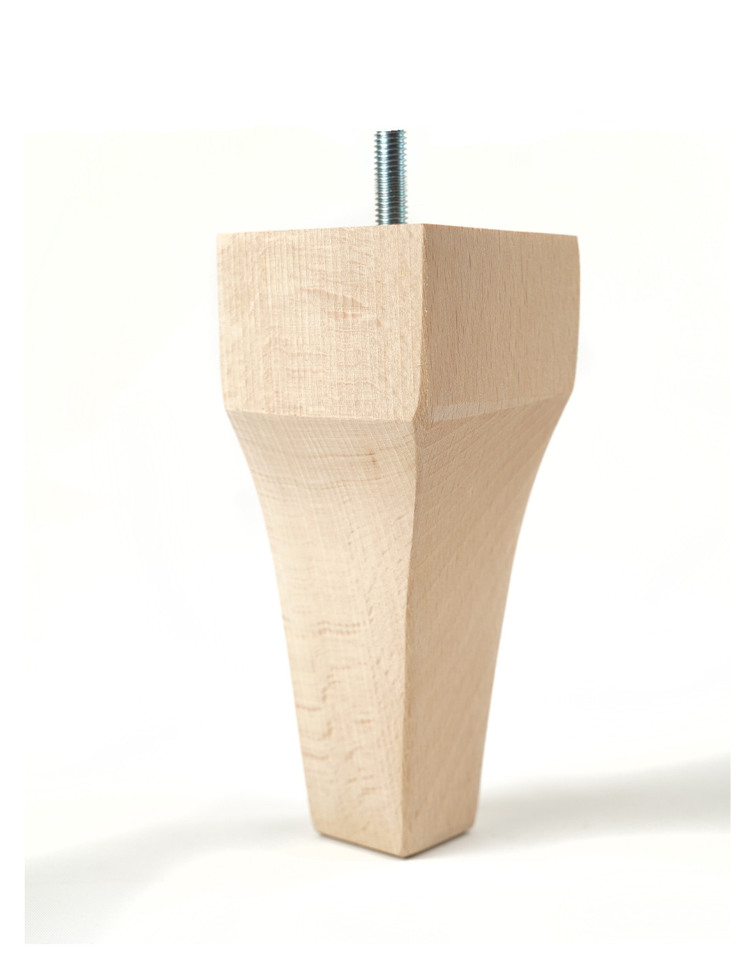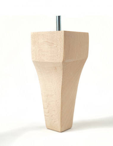 Stylized furniture leg made of beech wood in natural color. Of irregular shape and height of 15 cm, which makes it ideal for finishing upholstered furniture such as poufs, sofas or armchairs. It is ideal for painting with clear varnish, as well as for staining with stain or varnish of any color. The leg at the top has a screw for mounting, making installation with a coupler, as well as a claw nut available at kameleon.pro, quick and easy.