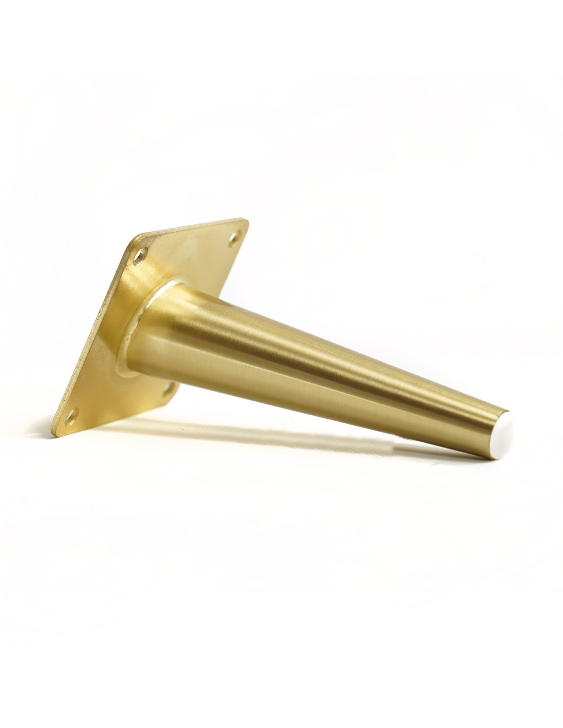 The conical steel furniture leg with a total height of 12.5 cm is a perfect model for finishing not only hardwood furniture, but also upholstered furniture. Depending on the height of the furniture, it can be used in dressers, nightstands, closets, or upholstered furniture - sofas, corners, armchairs, or poufs. The leg model can withstand a pressure of about 60 kilograms (one leg!), depending on the furniture and how it is mounted. The currently popular gold color will flawlessly fit into the current interior trends. For installation of KM8131 leg we recommend metric screws, and threaded screw couplers. Tapered screws or washer screws will also work well for installation.