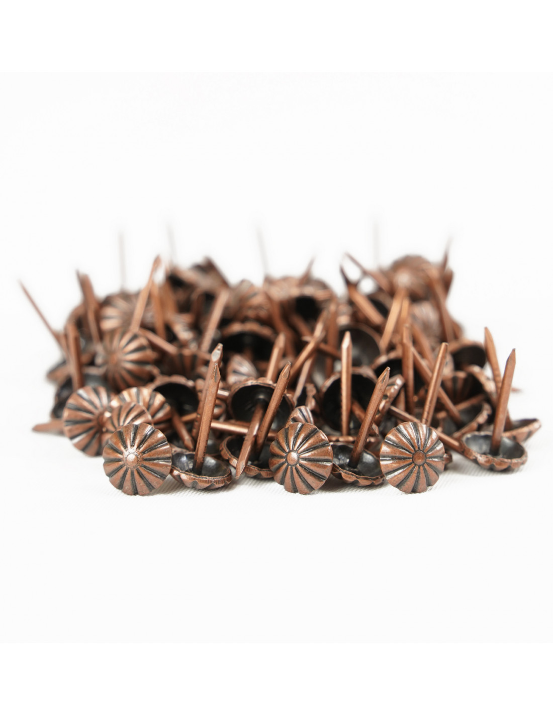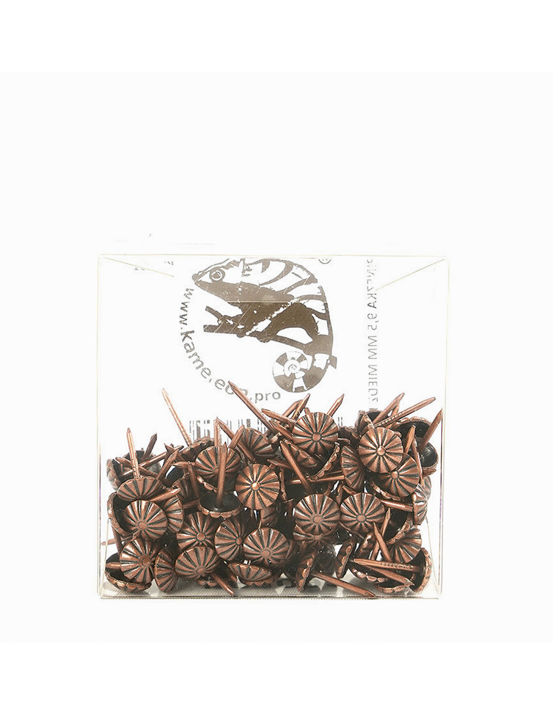 Pin 9.5 mm copper flower pack 100 pcs. KP4091 is a product that gives the possibility of decorating furniture and decorative objects. The durability of the product is ensured by the use of high-quality metal. The product is subjected to galvanization processes, and the resulting coating has a durable color and high quality. This upholstery nail is able to transform your upholstered piece of furniture.