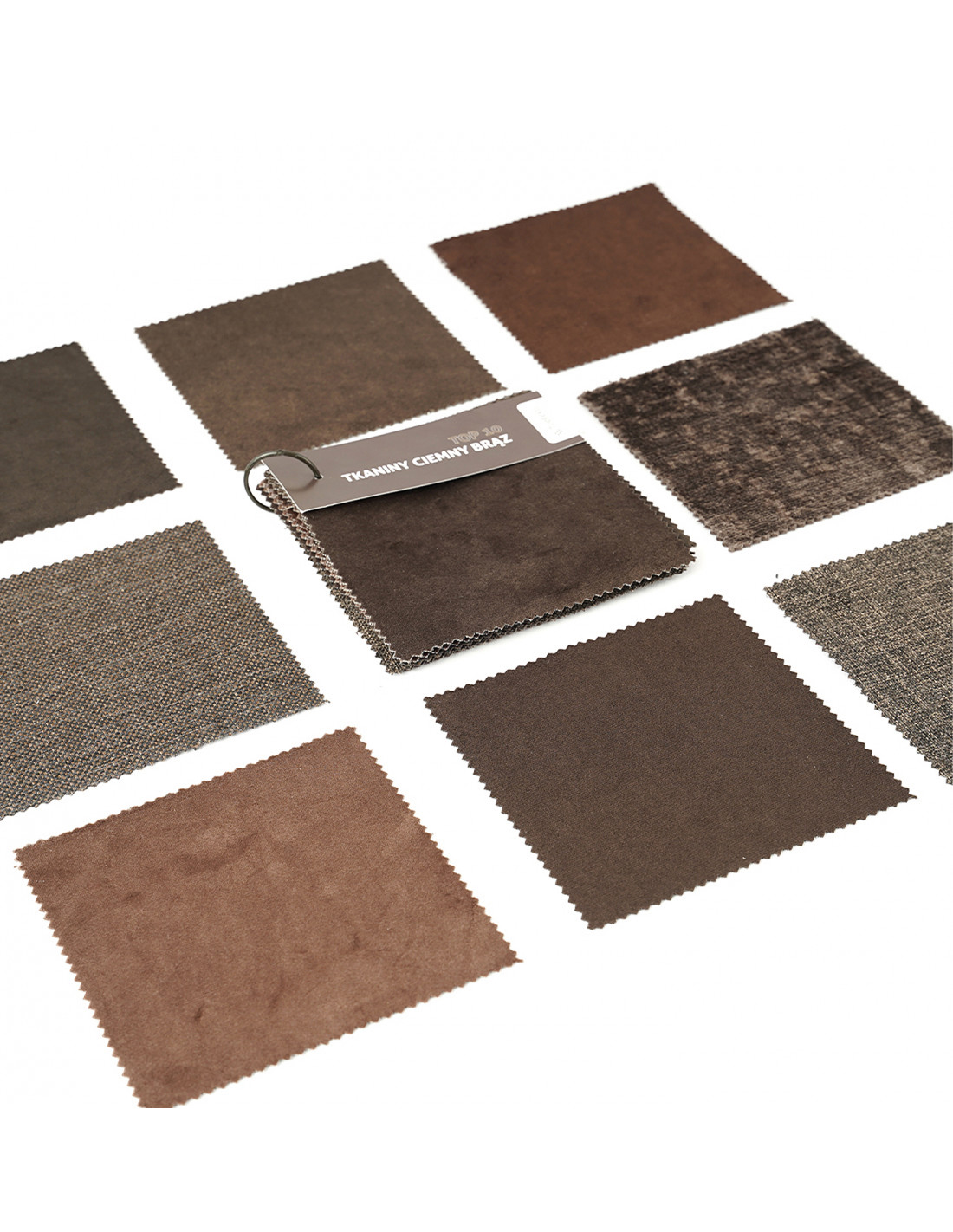 TOP10 dark brown sample set was created by Toptextil. The set has been thoughtfully selected the best fabrics in shades of dark brown. The set includes fabric samples measuring 15x15 cm (5 cm larger than standard samples).