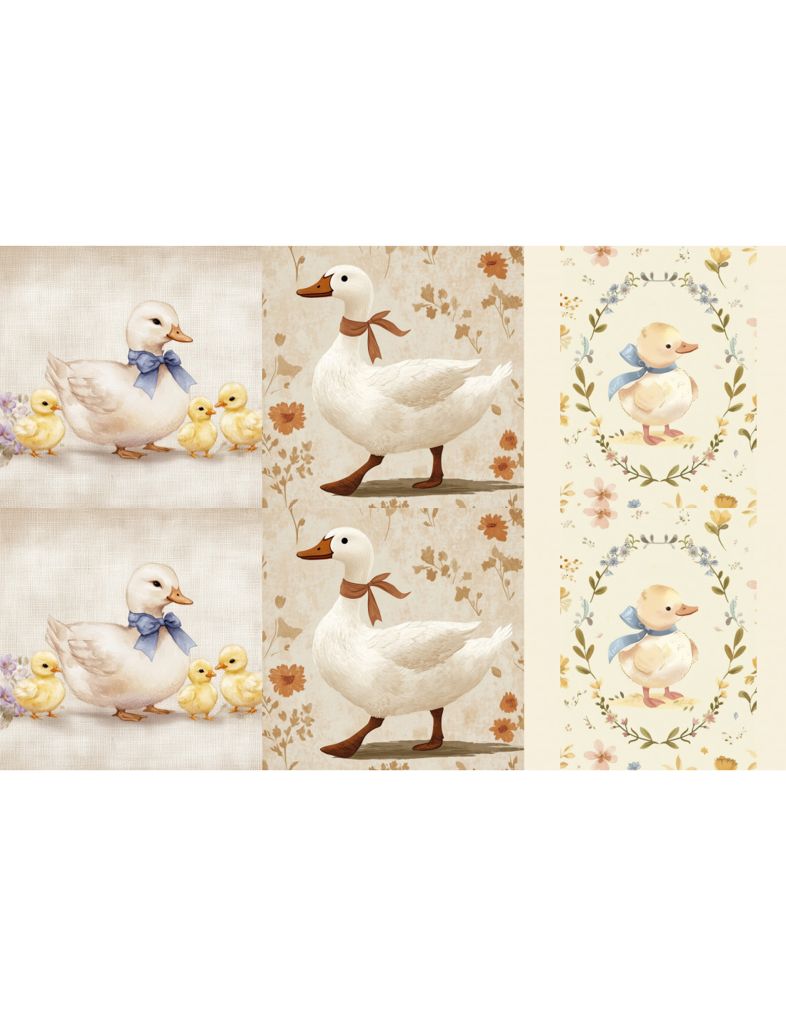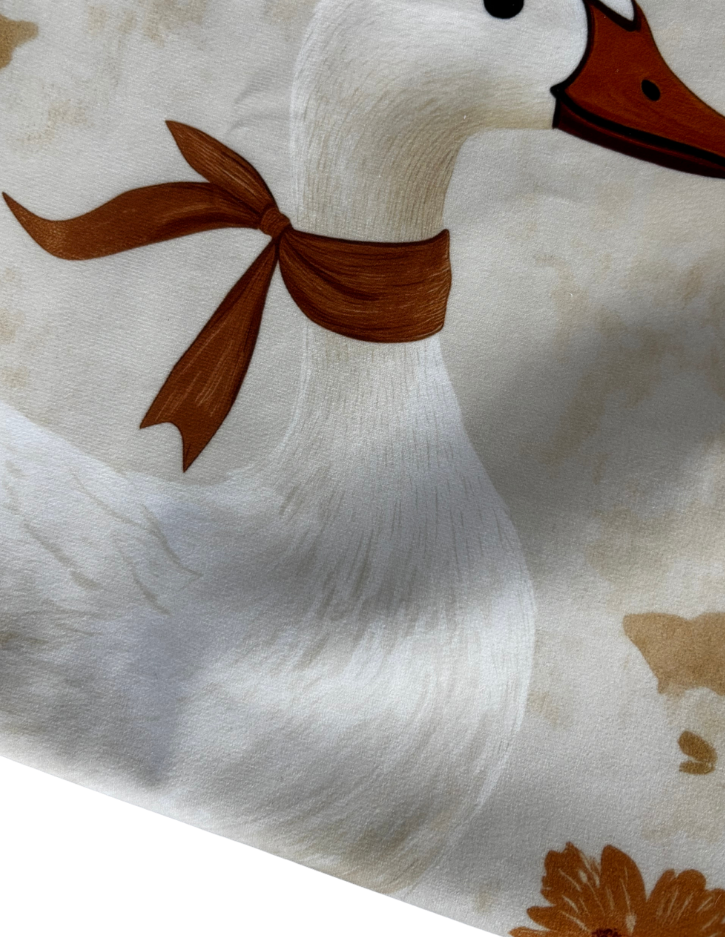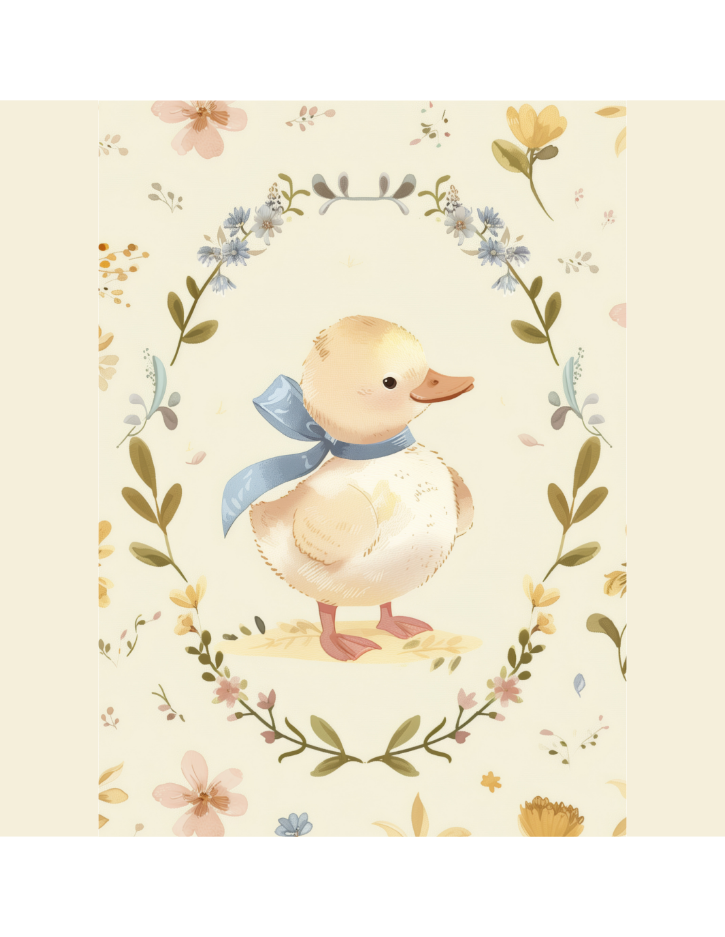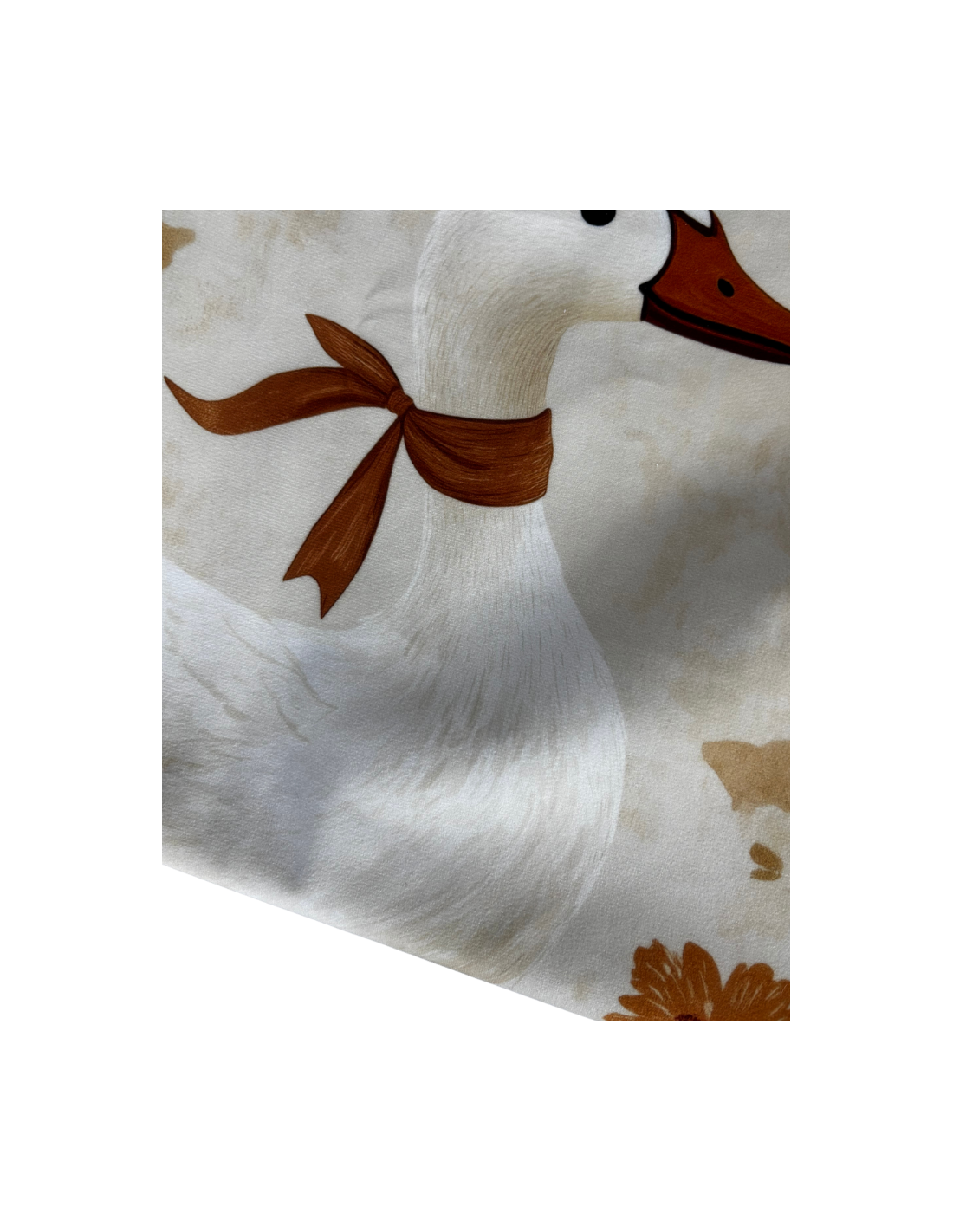 Panel poduszkowy o wymiarach ok. 50 × 50 cm z delikatną, akwarelową ilustracją w wielkanocnym stylu. Wzór przedstawia urocze kaczuszki i gąski z kokardkami, otoczone subtelnymi, pastelowymi kwiatami i wiankami, w ciepłej, naturalnej kolorystyce beżu, kremu, błękitu i pudrowej żółci. Całość utrzymana jest w stylu vintage / cottage, idealnie pasującym do wiosennych i świątecznych aranżacji wnętrz.