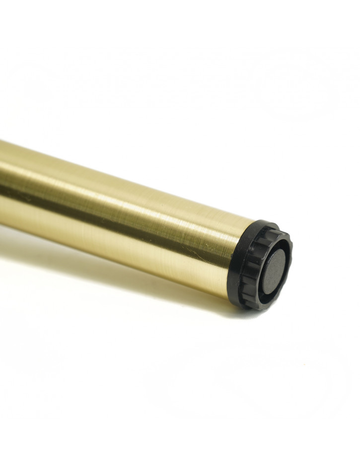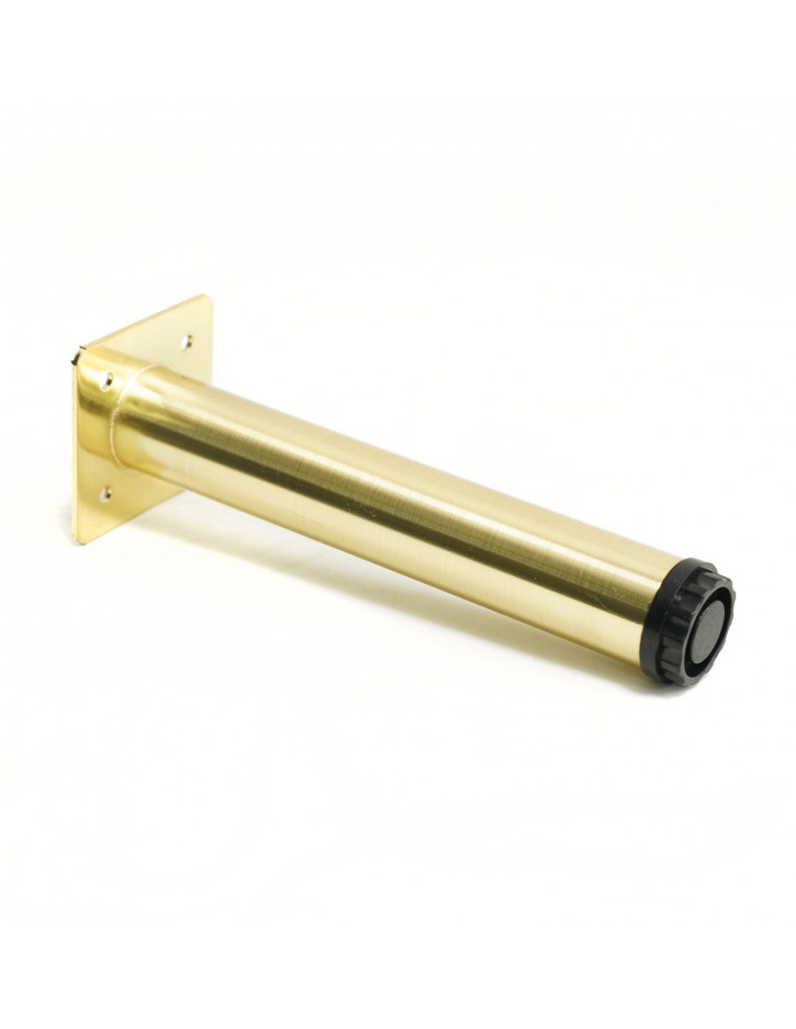 Noga meblowa metalowa w kolorze mosiądzu o całkowitej wysokości 18 cm, posiada możliwość regulacji. Nóżka meblowa metalowa znajdzie zastosowanie przy meblach tapicerowanych takich jak sofy, fotele, pufy, czy narożniki - świetnie odnajdzie się w rękach każdego tapicera. Nóżka świetnie sprawdzi się zamontowana do mebli IKEA. Na górnej części nogi została umieszczona płytka montażowa, dzięki której za pomocą wkrętów montażowych unix montaż nogi jest szybki i łatwy. Noga o minimalistycznym wykończeniu świetnie sprawdzi się do nowoczesnych wnętrz.