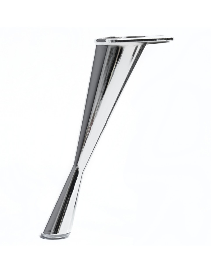 Noga meblowa metalowa o wysokości 17 cm w kolorze chromowanym w kształcie klepsydry to najlepszy dodatek do mebli tapicerowanych takich jak sofy, fotele, pufy i krzesła. Noga KM460 w górnej części posiada płytkę montażową, która ułatwia szybki i trwały montaż. Montowanie nogi odbywa się za pomocą wkrętów montażowych unix, które również znajdziesz w naszym sklepie. Doskonale wykończenie pomieszczeń w stylu nowoczesnym i minimalistycznym.