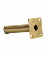 Noga meblowa o całkowitej wysokości 13 cm, stalowa w złotym kolorze z blaszką montażową, również w kolorze złotym. Przeznaczona do montażu w nowoczesnych meblach twardych i tapicerowanych. W zależności od wysokości mebla może być stosowana w komodach, szafkach nocnych, szafach, czy meblach tapicerowanych - sofach, fotelach, pufach. Noga posiada przyspawaną blachę montażową w rozmiarze 6 x 6 cm z czterema otworami montażowymi o rozstawie 4,5 cm. Nogę przykręcisz od spodu blatu na wkręty do drewna, lub wkręty metryczne, wraz z mufą wkręcaną, którą montujesz w meblu. Noga wykonana ze stali, malowana na kolor złoty.