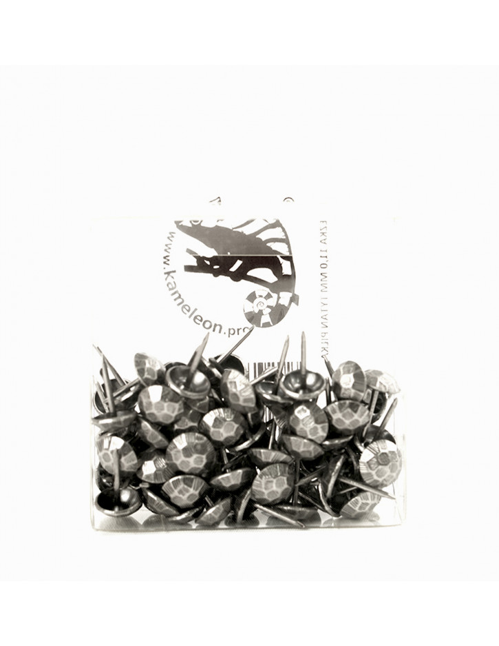 Ozdobna pinezka tapicerska o rozmiarze główki 11 milimetrów o formie łebka przypominającej piłkę (hexagony) w kolorze tytanu. Ozdobny gwóźdź tapicerski KP4143 pakowany jest w opakowania po 75 sztuk. Ozdobna pinezka tapicerska taka jak ta na pewno sprawdzi się jako ozdobny element w pokoju dla chłopca.